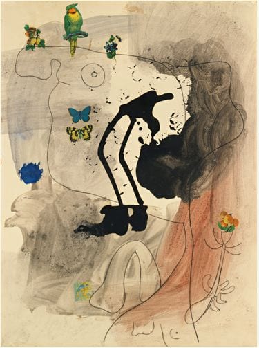 PROPERTY OF A PRIVATE AMERICAN COLLECTOR JOAN MIRÓ 1893 – 1983 MÉTAMORPHOSE Signed Miró (center left); signed Joan Miró, titled and dated 23/3-4/4/36 on the reverse Pencil, India ink, decal and watercolor on paper 25 1/8 by 18 7/8 in. 64 by 48 cm Executed between March 23-April 4, 1936. Estimate 600,000 — 800,000 USD