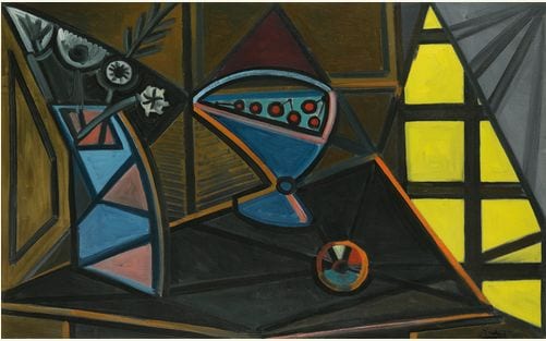 PROPERTY FROM A PRIVATE EUROPEAN COLLECTION PABLO PICASSO 1881 – 1973 VASE DE FLEURS ET COMPOTIER Signed Picasso (lower right) and dated 17 Septembre 43 on the stretcher Oil on canvas 31 7/8 by 51 1/8 in. 80.9 by 130 cm Painted on September 17, 1943. Estimate 4,000,000 — 6,000,000 USD