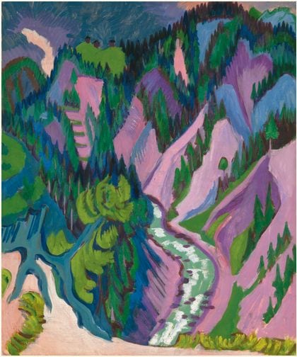 PROPERTY OF A PRIVATE NEW ENGLAND COLLECTOR ERNST LUDWIG KIRCHNER 1880 – 1938 IM SERTIGTAL (IN SERTIG VALLEY) Stamped Nachlass E.L. Kirchner Da/Aa 32 on the reverse Oil on canvas 47 1/4 by 39 3/8 in. 120 by 100 cm Painted circa 1925. Estimate 800,000 — 1,200,000 USD