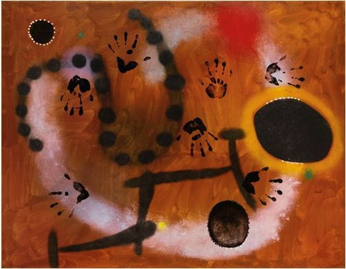 Joan Miró (1893-1983) Le serpent à coquelicots traînant sur un champ de violettes peuplé par des… oil and mixed media on board 41¼ x 29½ in. (105 x 75 cm.) ESTIMATE $12,000,000 – $18,000,000
