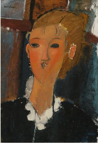 PROPERTY FROM THE RUTH G. HARDMAN ESTATE AMEDEO MODIGLIANI 1884 – 1920 JEUNE FEMME À LA COLLERETTE Signed Modigliani (upper left) Oil on canvas 21 7/8 by 15 1/4 in. 55.4 by 38.7 cm Painted in 1915. Estimate 1,000,000 — 1,500,000 USD