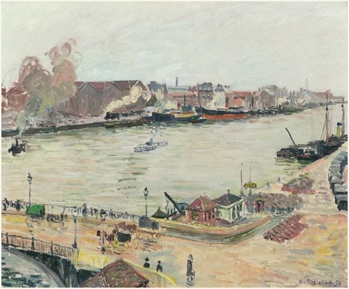 CAMILLE PISSARRO 1830 – 1903 LA SEINE À ROUEN, PONT DE BOIELDIEU Signed C. Pissarro and dated 96 (lower right) Oil on canvas 21 1/4 by 25 5/8 in. 54 by 65 cm Painted in 1896. Estimate 800,000 — 1,200,000 USD
