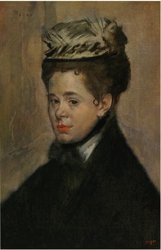 EDGAR DEGAS 1834 – 1917 BUSTE DE FEMME Signed Degas (upper left) and stamped with the signature (lower right) Oil on canvas 21 1/2 by 14 in. 54.5 by 35.5 cm Painted circa 1887-1890. Estimate 800,000 — 1,200,000 USD