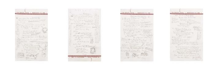 Pietra miliare della storia della musica moderna, Like a Rolling Stone, che ha trasformato Dylan da cantante folk a icona del rock, oggi è offerto all’asta con una stima di $1-2 milioni. Il documento, composto da quattro pagine, vicino al verso più volte ripetuto “how does it feel” presenta pensieri vaganti sulla cultura americana e interessanti schizzi dell’artista.