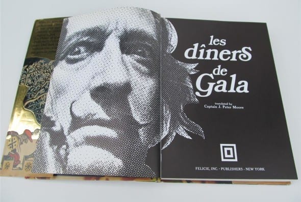 “Quando avevo sei anni volevo essere un cuoco” disse Salvador Dalì; ma è stato solo alla fine degli anni Sessanta che ha canalizzato questa sua fantasia infantile in Les Diners de Gala – un ricettario riccamente illustrato, pubblicato originariamente nel 1973 con incisioni e dipinti erotici di Dalí.
