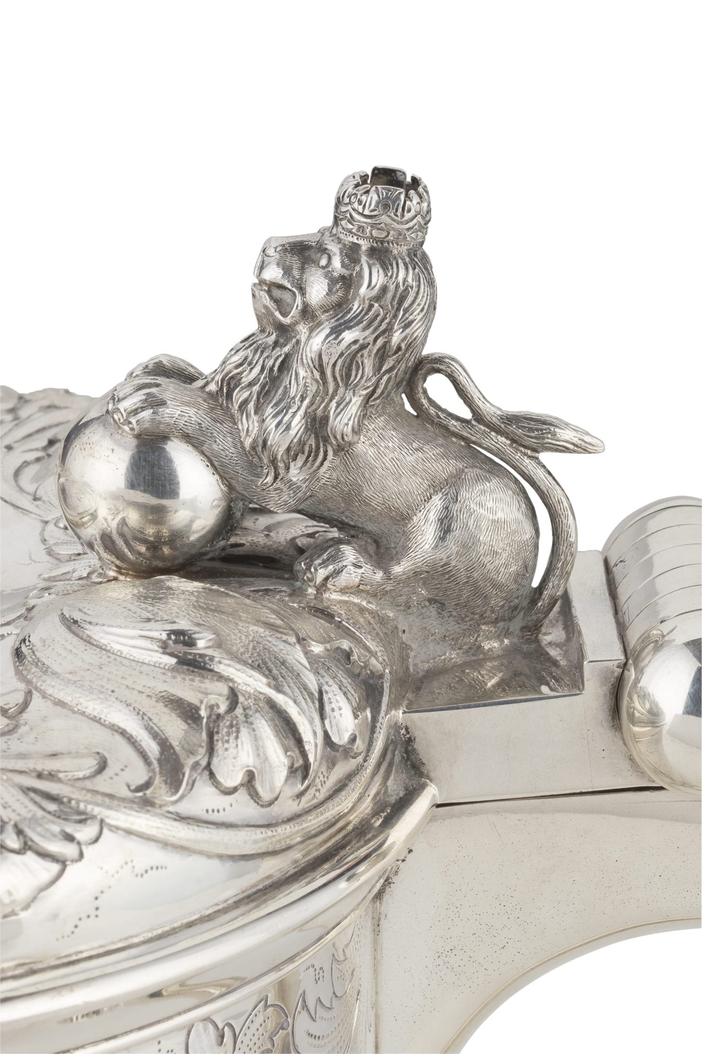 Grande attenzione è stata posta anche agli oggetti decorativi e di grandi dimensioni come il boccale in argento del 1901 della celeberrima ditta Lambert & Co. di Londra (lotto 124 stima 7.500-9.500 euro), dal peso di 2898 grammi e alto 28,5 centimetri, che si caratterizza per un corpo cilindrico con decorazioni floreali, poggiante su tre piedini a leone coronato con sfera, manico sagomato con presa a leone coronato, coperchio sbalzato a motivi naturalistici con conio di Carlo II e di Britannia.