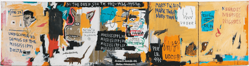 Jean-Michel Basquiat (1960-1988) Peter and the Wolf acrylic, oilstick and paper collage on canvas 100 x 113 5/8 in. (254 x 289 cm.) ESTIMATE $5,000,000 – $7,000,000