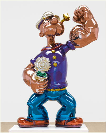 JEFF KOONS B.1955 POPEYE signed, dated 2009-2011 and numbered 3/3 on the underside of Popeye’s right foot mirror polished stainless steel with transparent color coating 78 x 51 3/4 x 28 1/2 in. 198.1 x 131 x 72.4 cm. Executed in 2009-2011, this work is number three from an edition of three plus one artist’s proof. Estimate Estimate Upon Request