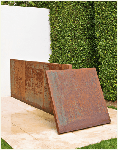 PROPERTY FROM THE COLLECTION OF JANE AND MARC NATHANSON, LOS ANGELES RICHARD SERRA B.1939 FOUR PLATES EDGES UP Cor-ten steel, in four parts each: 48 x 48 x 3 in. 121.9 x 121.9 x 7.6 cm. overall: 48 x 48 x 164 in. 121.9 x 121.9 x 416.6 cm. Executed in 1969/1978. Estimate 2,500,000 — 3,500,000 USD