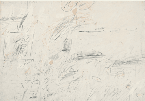 PROPERTY FROM A PRIVATE EAST COAST COLLECTION CY TWOMBLY 1928 – 2011 UNTITLED oil, pencil and colored crayon on paper laid on canvas 27 1/2 x 34 5/8 in. 70 x 88 cm. Executed in 1971, this work will be included in the forthcoming Catalogue Raisonné of Cy Twombly Drawings being prepared by Nicola Del Roscio. Estimate 2,000,000 — 3,000,000 USD
