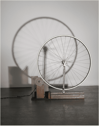 PROPERTY SOLD TO BENEFIT THE PAUL TAYLOR DANCE FOUNDATION ROBERT RAUSCHENBERG 1925 – 2008 TRACER bicycle wheel, metal plate, electric motor and Plexiglas on wood structure 27 1/2 x 22 1/2 x 6 in. 69.8 x 57.1 x 15.2 cm. Executed in 1962. Estimate 600,000 — 800,000 USD