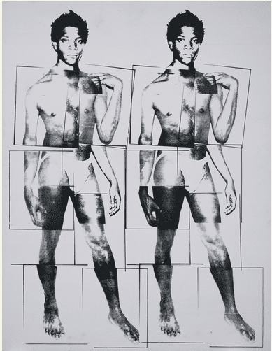 ANDY WARHOL 1928 – 1987 PORTRAIT OF JEAN-MICHEL AS DAVID signed and dated ’84 on the overlap acrylic and silkscreen ink on canvas 90 x 69 1/2 in. 228.6 x 176.5 cm. Estimate 2,500,000 — 3,500,000 USD