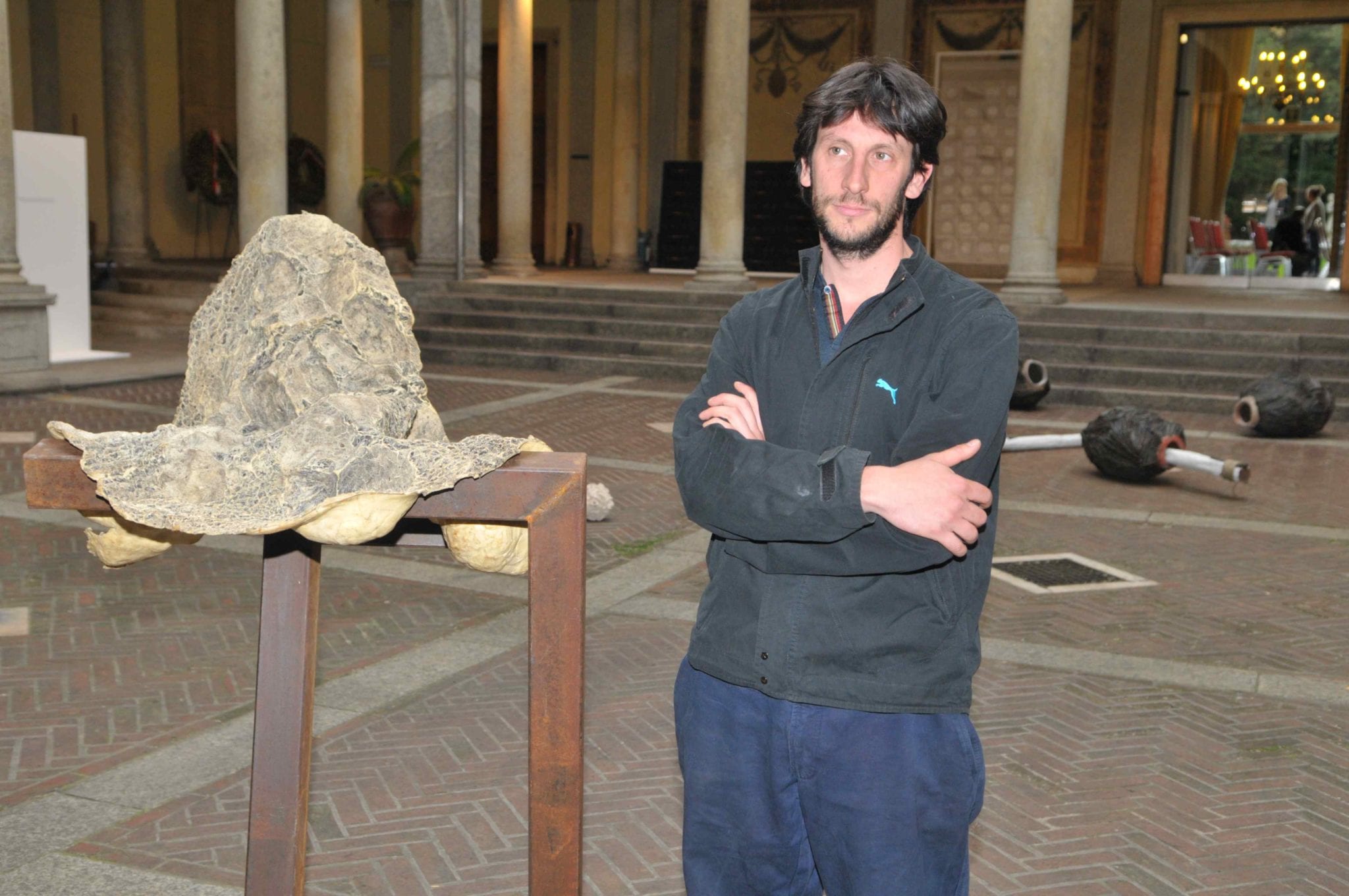 Paolo Peroni: è un giovane artista di 30 anni che vive e lavora tra Milano e Torino. Collabora con la Galleria de Chirico, che gli ha dedicato diverse mostre personali. Comincia la sua carriera, classificandosi terzo alla XXIV Biennale di Scultura di Gubbio nel 2006 e nel 2012 vince il Premio Schindler per l’Arte. Con “Sudari da Caccia”, un calco in silicone sul tumore di una pianta, Paolo riflette sulla violenza dell’uomo che imprime sulla natura.