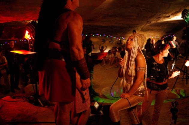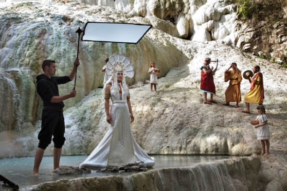 C’è una presentatrice donna, una dea bianca, e una troupe di uomini vestiti di nero. Li incontriamo nel bosco, e Gelsomina ne è incantata.