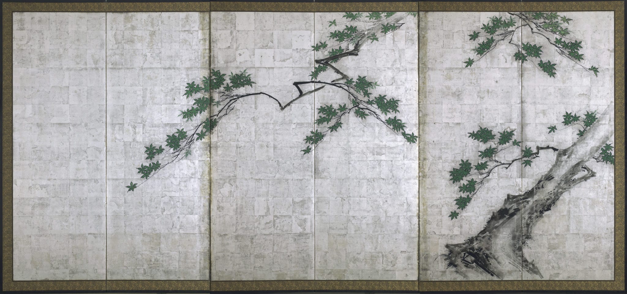 I due paraventi a sei ante del periodo Taisho, provenienti dalla nota galleria londinese Gregg Baker Asian Art raffiguranti un acero palmatum in estate e in autunno, sono resi su carta di ampie dimensioni (cm. 375 x 175) mediante la tecnica dell’acquerello, in cui sapienti tratti, talvolta lunghi e talaltra spezzati, descrivono l’andamento dei rami e la volumetria del tronco.