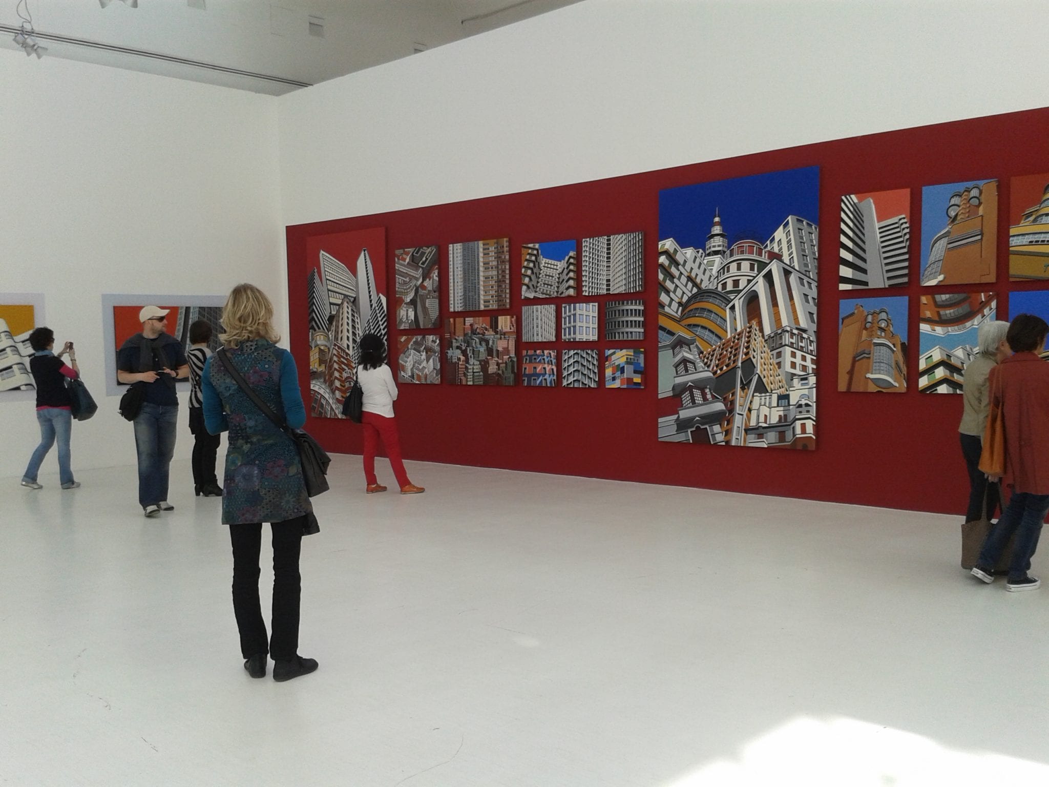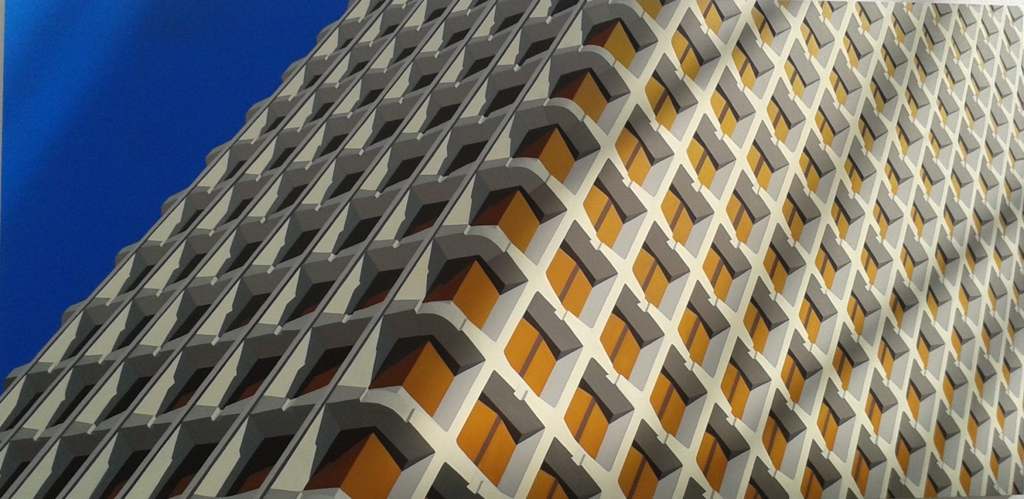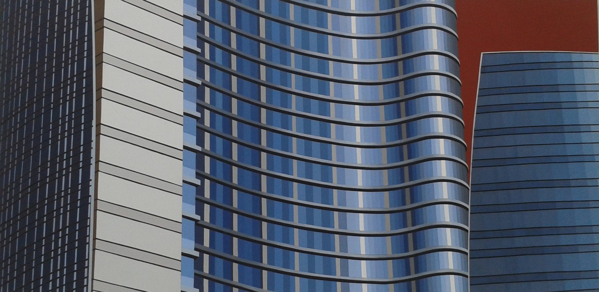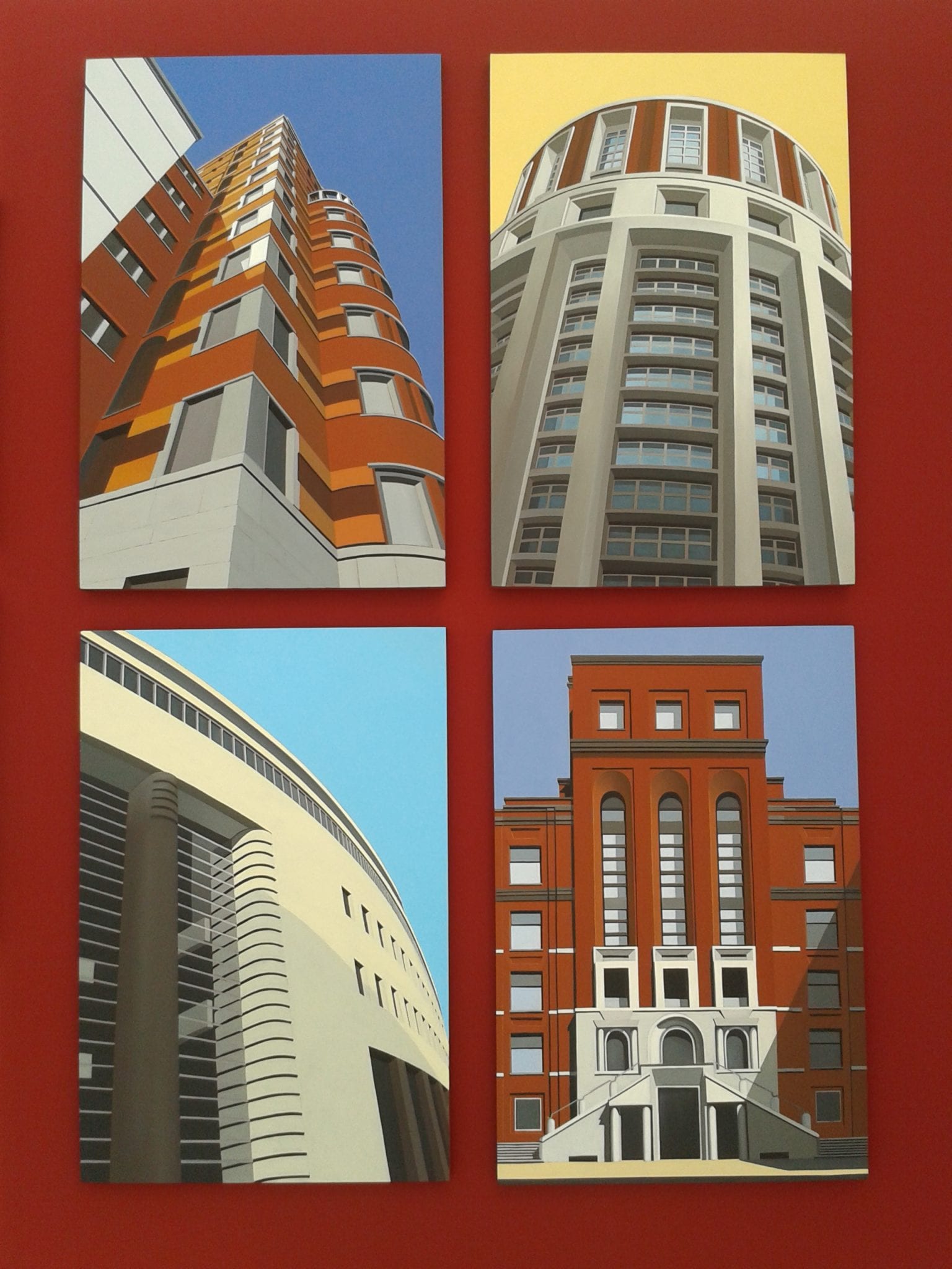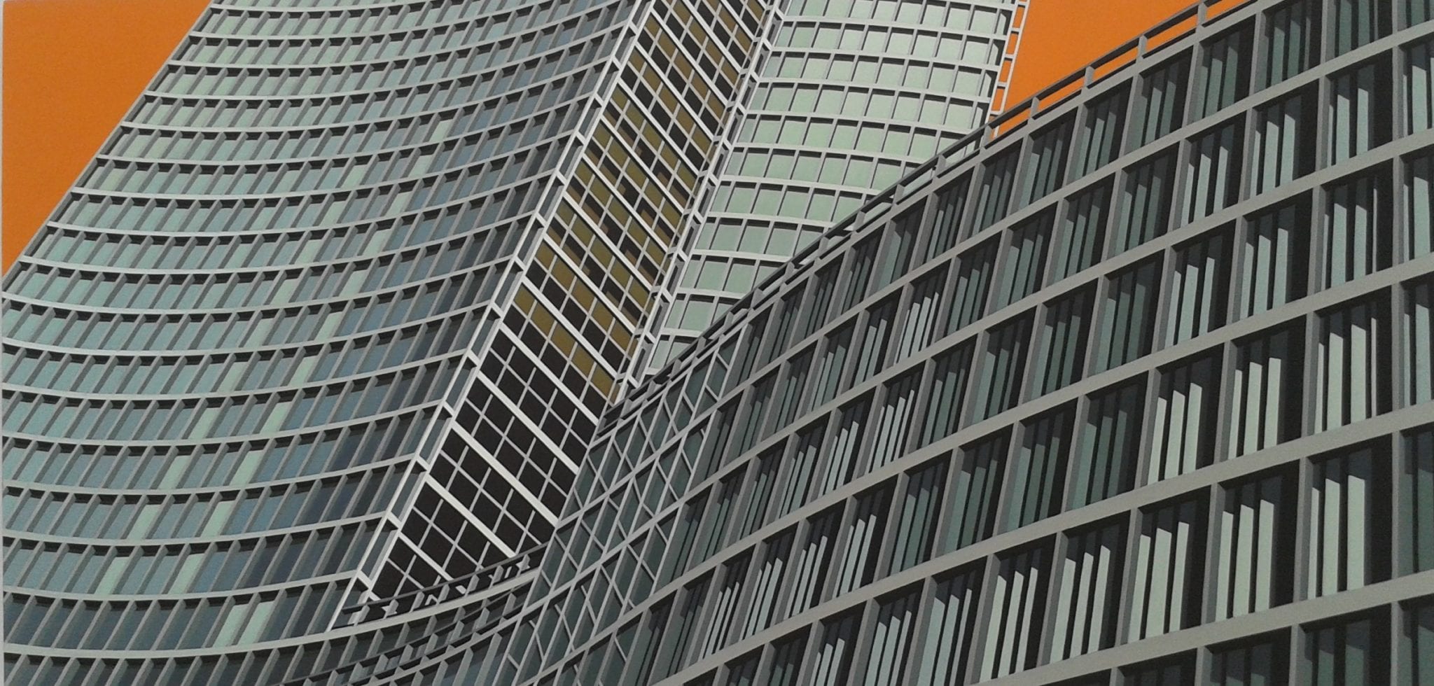 Sviluppa un linguaggio particolarissimo fatto di piatte monocromie, in cui l’architettura prende il sopravvento imponendosi prepotentemente su tutta la superficie della tela. Una veduta dall’alto, una dal basso, il dettaglio decontestualizzato di un palazzo, edifici ammassati in una irreale composizione: la fisicità di strutture realmente esistenti si fa immagine quasi astratta e allucinatoria nelle sue opere. Le città sono svuotate e appaiono sulla tela in un surreale silenzio che lascia spazio al sole, la cui luce bianca si infrange sulle nitide facciate prospetticamente distorte dei palazzi rappresentati dall’artista nei suoi quadri, dove il rimando a Edward Hopper è esplicito. Si compone così una città ideale, un tempio dell’architettura, un utopistico progetto di “Atlante urbano” nel quale si rintracciano tutte le linee di base e le strutture portanti dell’architettura moderna e contemporanea.