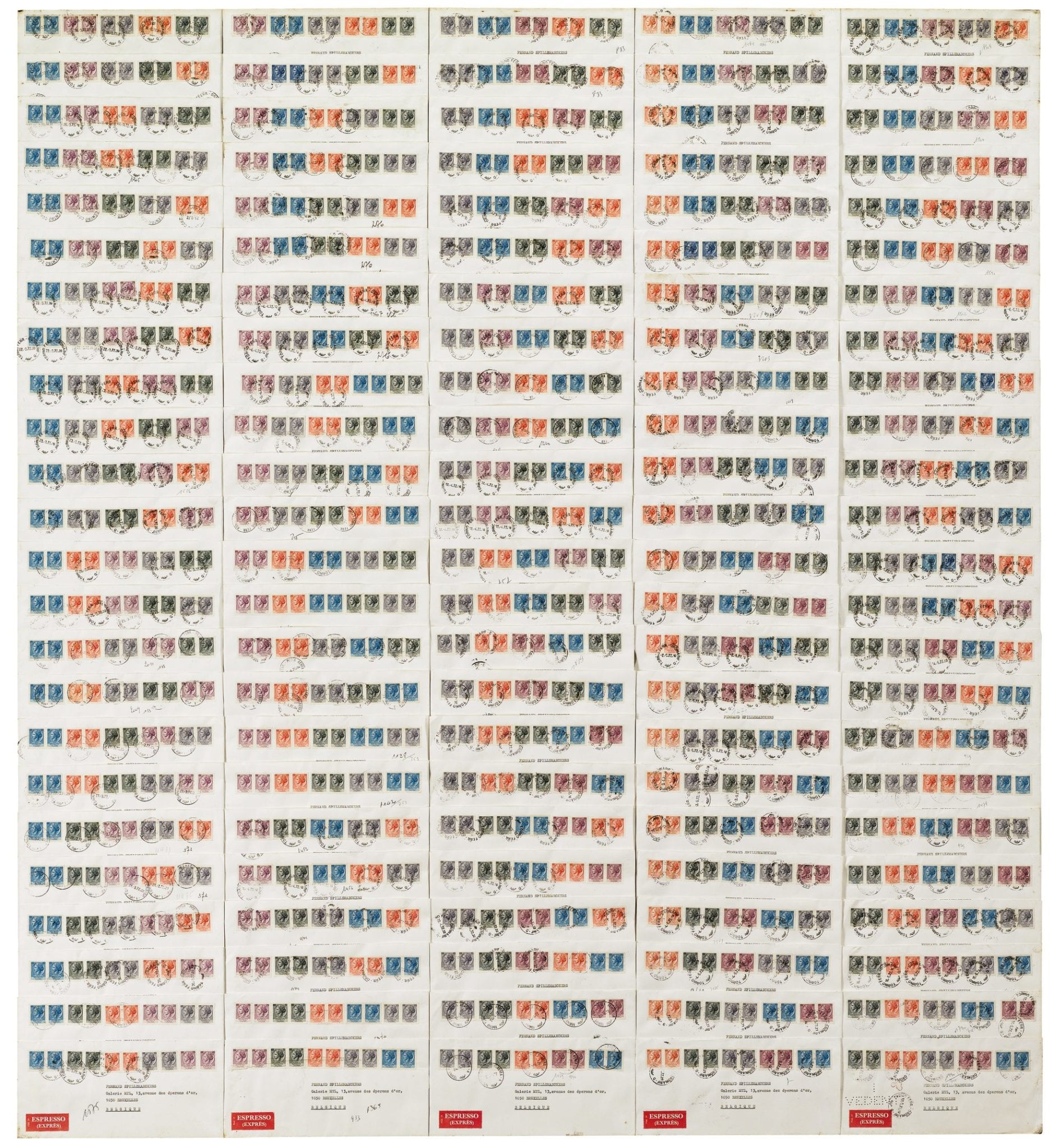 Infine, citiamo tre capolavori di Arte Povera, un Ceroli del 1967, Giulio Paolini con Una Visione (val. €80.000-120.000) – tela con un testo dell’artista a matita montato al centro di una tela più grande, così da celare un disegno segreto del quale si percepiscono solo alcune tracce al margine, e un Lavoro Postale di Alighiero Boetti del 1972 (125×113 cm), una composizione di buste affrancate, tutte inviate a Fernand Spillemaeckers, artista, critico e gallerista belga, disposte secondo criteri e regole combinatorie tipiche di tutta la serie dei Lavori Postali. Venne esposta nel giugno del 1972 presso la celebre galleria MTL di Bruxelles (fondata nel ’69 dallo stesso Spillemaeckers). Lavoro Postale, 1972, proveniente da una collezione privata italiana, ha una stima in catalogo di €200,000-300,000.