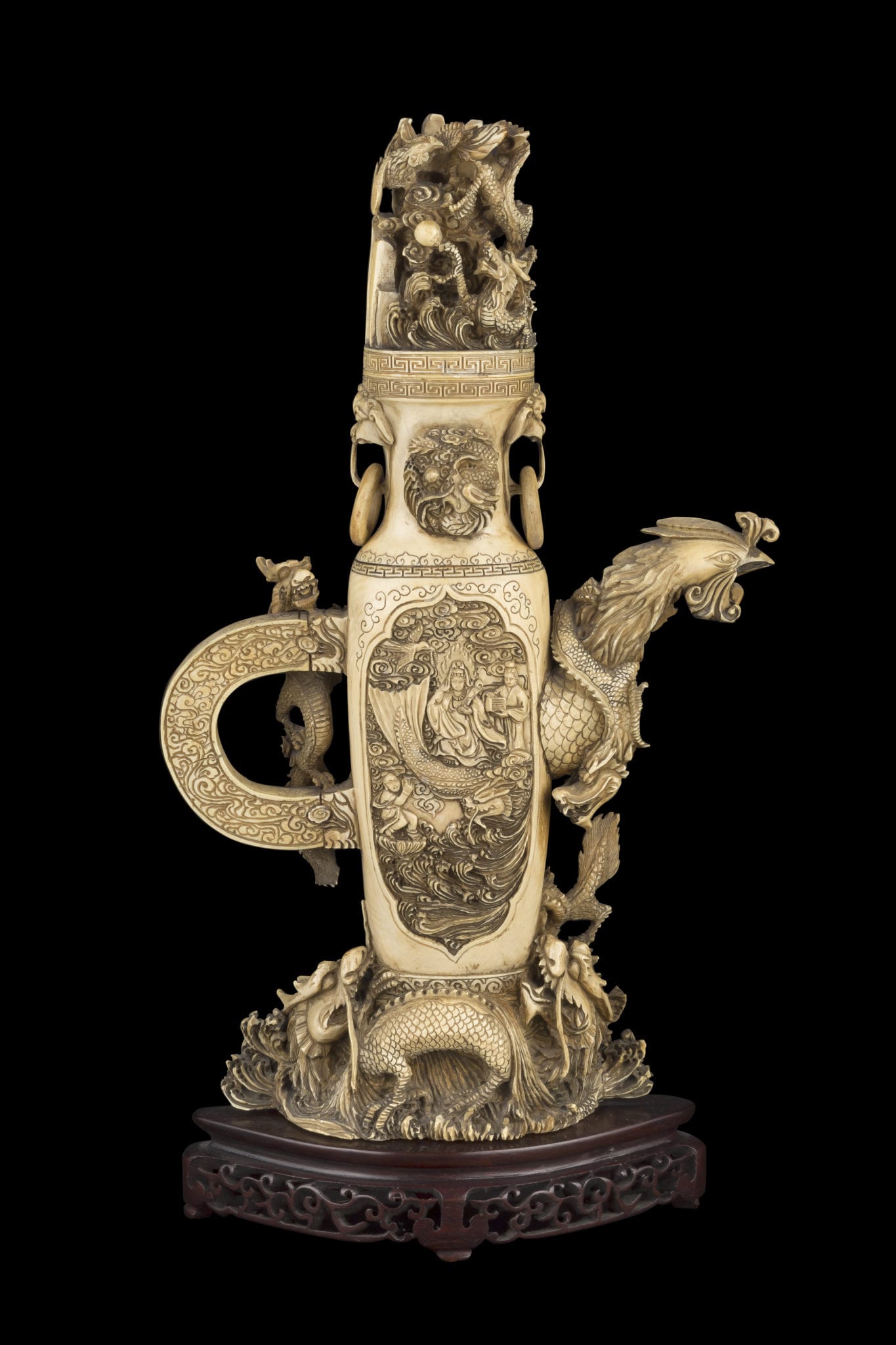 È da segnalare un’ampia selezione di opere in avorio, tra i quali spiccano una grande teiera con becco a fenice, Cina, tardo XIX secolo, marchio apocrifo Qianlong (lotto 54 stima 3.500 – 5.500 euro), una coppia di vasi cinesi con coperchio del XIX secolo (lotto 55 stima 2.500 – 3.500 euro), e un gruppo di figure raffiguranti gli otto immortali della fine della dinastia Qing (lotto 53 stima 8.000 – 12.000 euro).