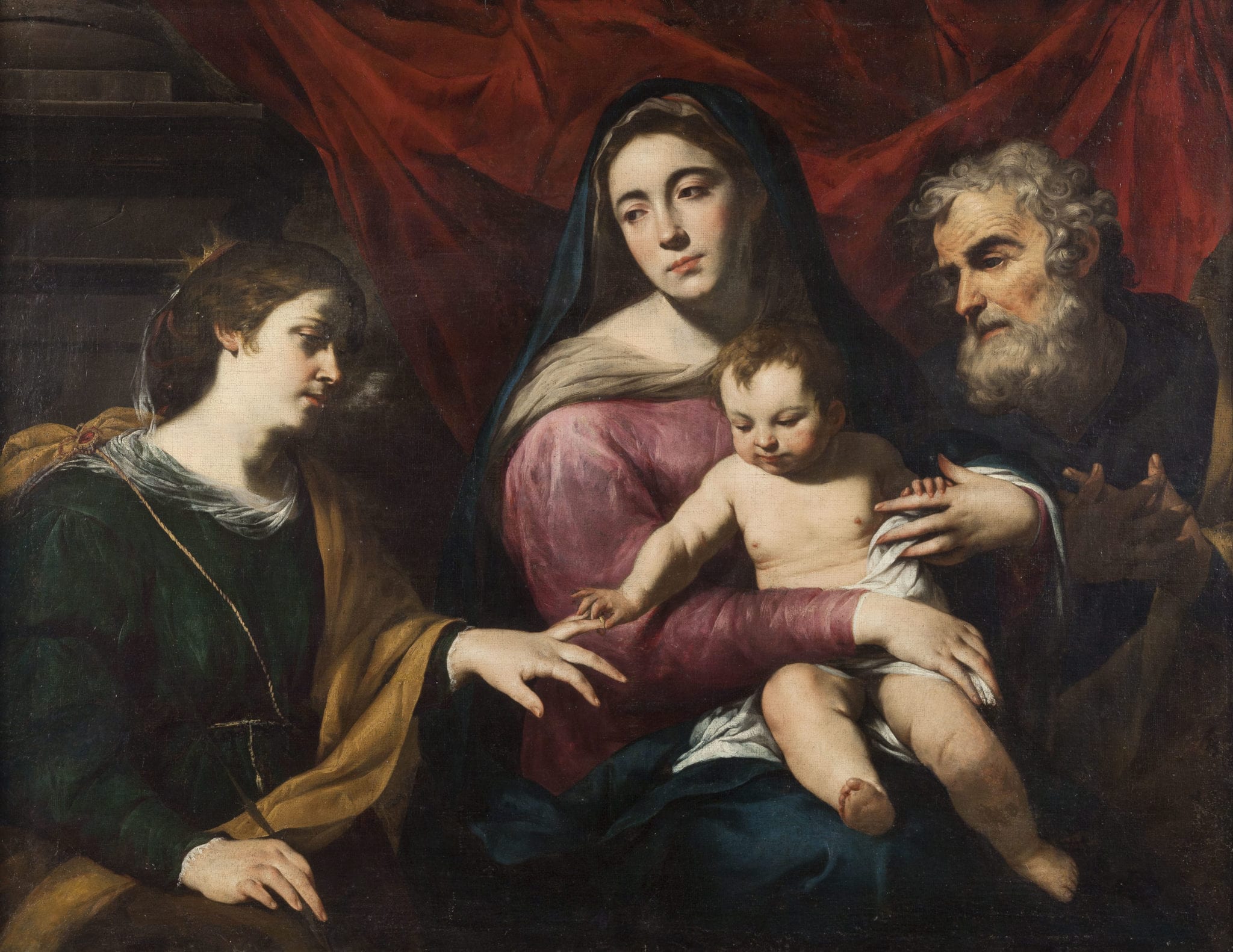 Rimanendo nel territorio degli incontri inconsueti tre opere del Seicento napoletano spiccano nell’accattivante lista dei Dipinti Antichi: un Matrimonio mistico di Santa Caterina d’Alessandria di Francesco Guarino già nella collezione romana del Barone Fassini (lotto 427 stima 40.000 – 60.000 euro). La sua maniera riprende il sensuale e tenebroso cromatismo di Massimo Stazione, ma l’intonazione cromatica è chiara, con gialli e rossi brillanti alternati a verdi scuri e lucidi, il clima è domestico e austero, gli affetti così come i virtuosismi pittorici e narrativi – come non notare la mano del Bambino dolcemente appoggiata a quella di Giuseppe – che rendono Francesco Guarino uno degli artisti più eleganti del panorama partenopeo tra gli anni Trenta e Quaranta del Seicento insieme a Bernardo Cavallino.