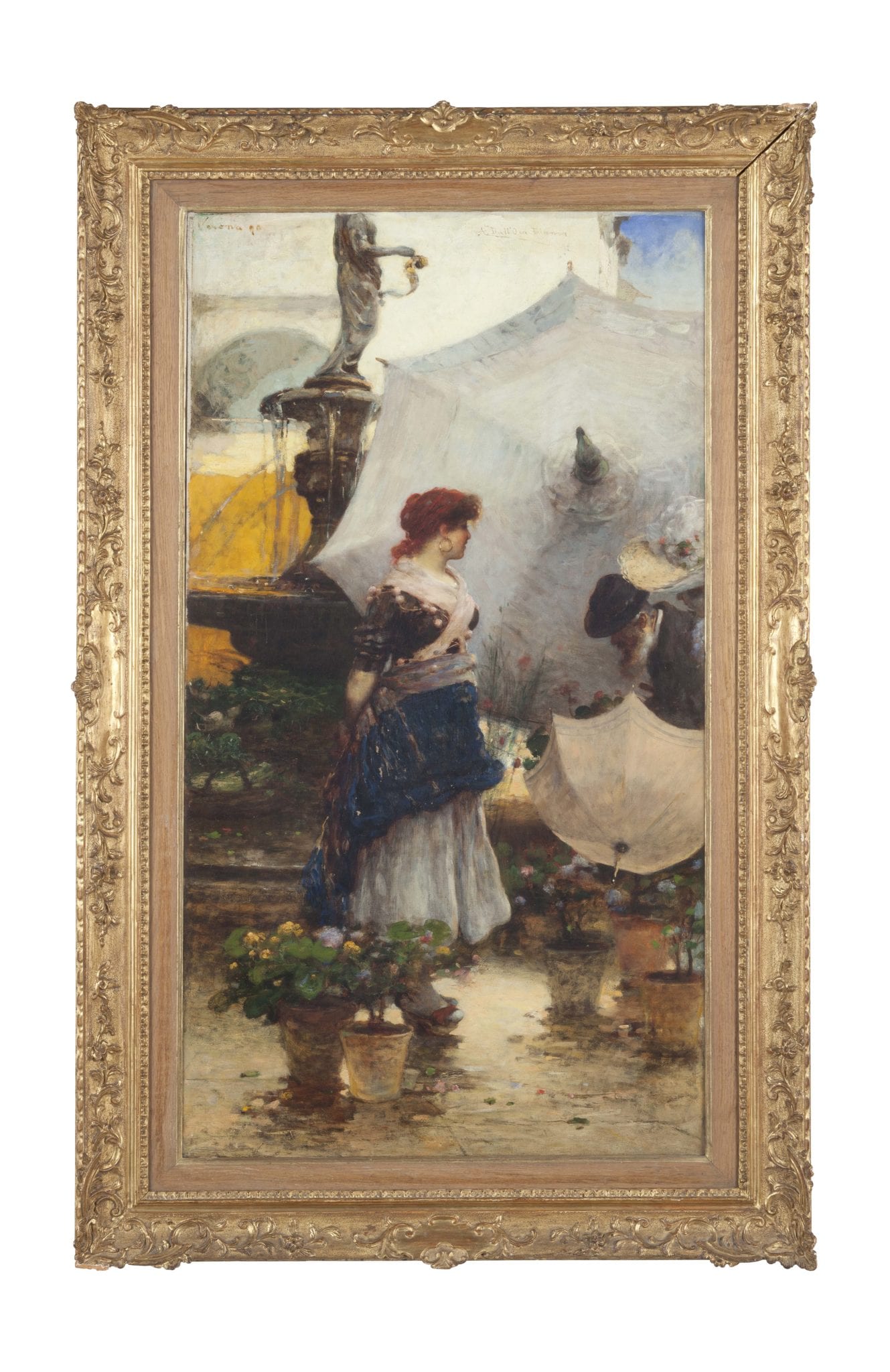 Una giovane donna, esuberante nella sua sfrontata bellezza, è l’icona, infine, di un’intensa tela di Angelo Dall’Oca Bianca (Verona 1858 – 1942) dal titolo Piazza delle Erbe, che esalta non solo la bellezza femminile, ma anche e soprattutto, la città di Verona come fulcro della sua ricerca artistica (lotto 512 stima 18.000 – 20.000 euro).