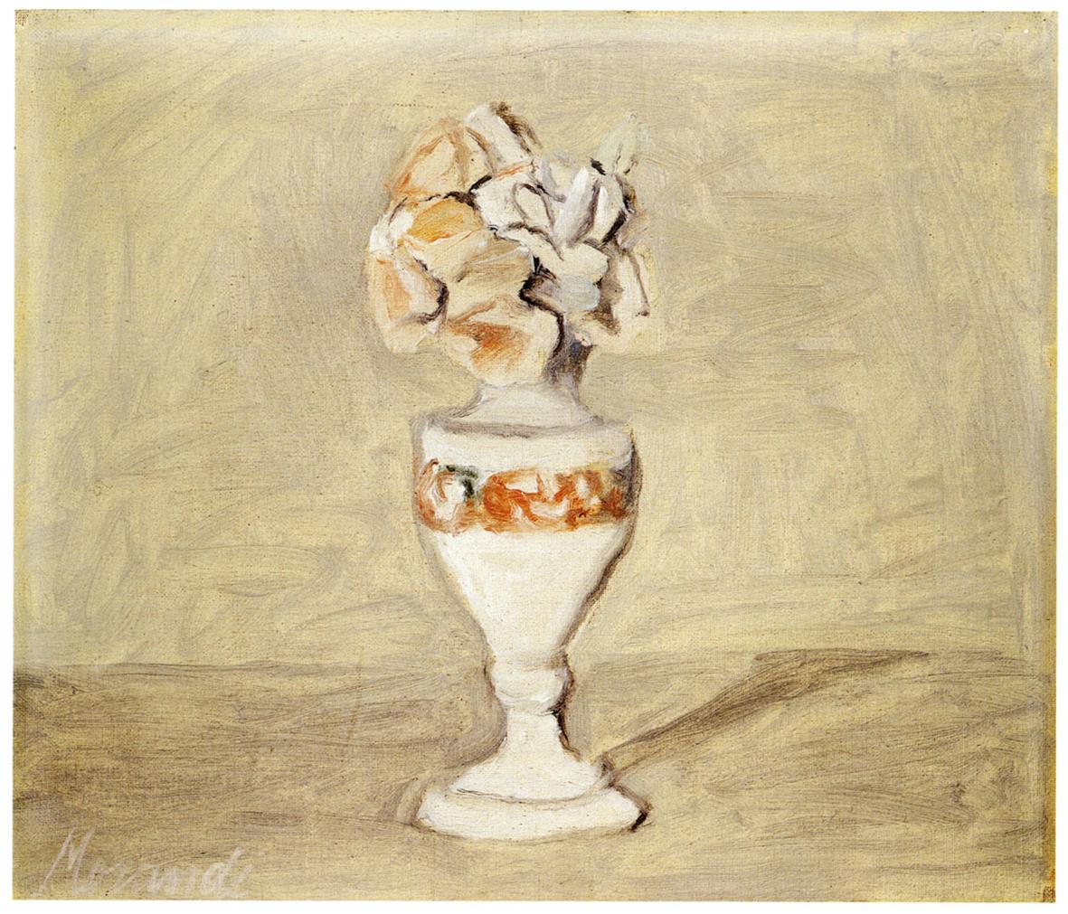 Infine spetterà a Longhi ricordare “il grande pittore” al momento della sua scomparsa per la trasmissione televisiva “L’Approdo”, registrata nel giugno 1964. Alle parole commosse per la perdita di un grande “Amico”, rafforzate dalla certezza che non vi sarebbero più stati “altri, nuovi dipinti di Morandi”, il critico non fa mancare la propria vis polemica. Sottolinea, infatti, come “una nemesi capricciosa ma non priva di significato” avesse voluto “che Morandi uscisse di scena il giorno stesso in cui venivano esposti a Venezia i prodotti della ‘pop art’”. Ma soprattutto Longhi, con parole quasi profetiche, imprimerà una sorta di energia a questo saluto proiettando la figura di Morandi nel futuro, assegnandogli un ruolo da protagonista: “Voglio dire che la statura di Morandi potrà, dovrà crescere ancora, dopo che questo ultimo cinquantennio sarà stato equamente ridimensionato”, dopo di che “ben pochi resteranno a contarsi, forse sulle dita di una sola mano; e Morandi non sarà secondo a nessuno”.