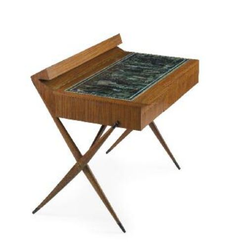 Altri importanti protagonisti sono i designer Ico e Luisa Parisi, che già nel 1947 avevano fondato lo studio ‘La Ruota’ per la progettazione d’architettura e d’arredi. Uno scrittoio toilette con piano in smalto su rame realizzato per Azucena, esecuzione De Poli, pittore Pietro Zuffi, presentato nella mostra sul design italiano di New York del 1954 sarà esitato con una stima di 5.000 – 6.000 euro.