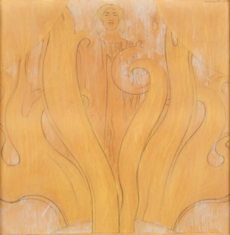 Fernand Khnopff (1858 – 1921) è una delle personalità più misteriose del simbolismo europeo. Erede di una delle famiglie più ricche del Belgio, è artista colto e raffinato che si forma studiando Delacroix, Gustav Moreau e Edward Burne-Jones, ma il suo carattere come la sua pittura è claustrofobico, decadente e chiuso in se stesso, pur nel rarefatto grafismo che possiamo apprezzare in un delicato pastello a carboncino su carta riportato su tela (cm 57,9 x 56,2) raffigurante il Fuoco uno dei quattro elementi (lotto 64 stima 15.000 – 20.000 euro). La figura femminile si staglia al centro della scena rivolgendo il suo sguardo direttamente verso il fruitore, mentre le fiamme sviluppate come eleganti arabeschi, la svelano solo allo sguardo degli iniziati.