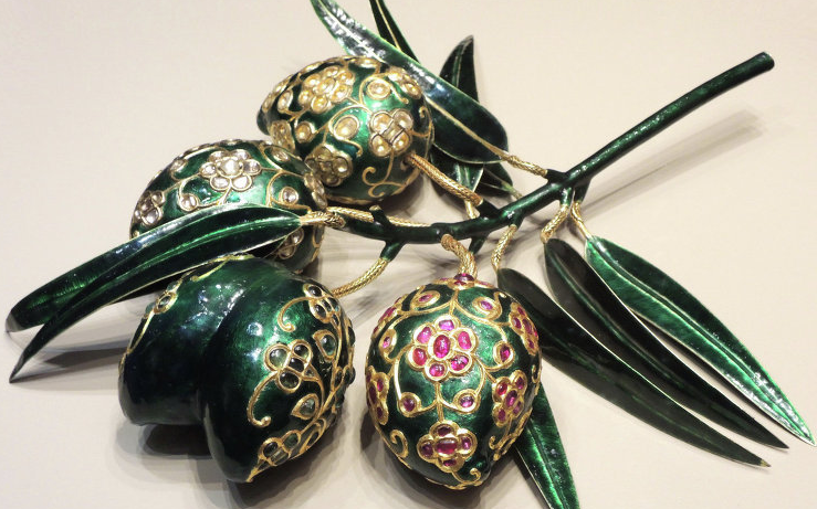 Экспонат выставки "Индия: Драгоценности, покорившие мир": украшение в виде ветки.