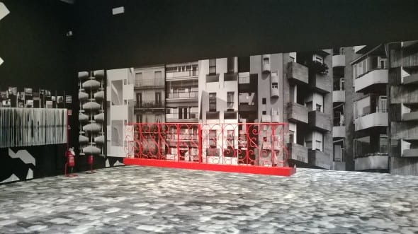 Trovano posto nelle Corderie lavori che investigano e denunciano le ricadute sociali di decisioni politiche negative (dalla ricostruzione senza una visione d’insieme dopo il terremoto all’Aquila agli effetti disastrosi del colonialismo in Libia), opere che indagano fenomeni migratori e le loro conseguenze su società e paesaggio e diverse indagini sull’identità, spesso in mutamento, di alcuni luoghi e della popolazione che li abita (dalla campagna di Tortona, ai luoghi del divertimento metropolitani e della riviera romagnola, con tutte le loro contraddizioni). Ne esce insomma un quadro variegato, come la realtà che ci si propone di indagare, affrontata sempre da angolature differenti. Il percorso lungo le sale di Monditalia è inoltre accompagnato dalla proiezione di numerosi film che hanno fatto la storia del cinema italiano e da diverse esibizioni di danza, teatro e musicali.