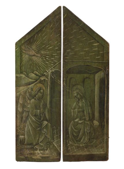 cm 1); Annunciazione a monocromo verde (rovescio delle due ante)