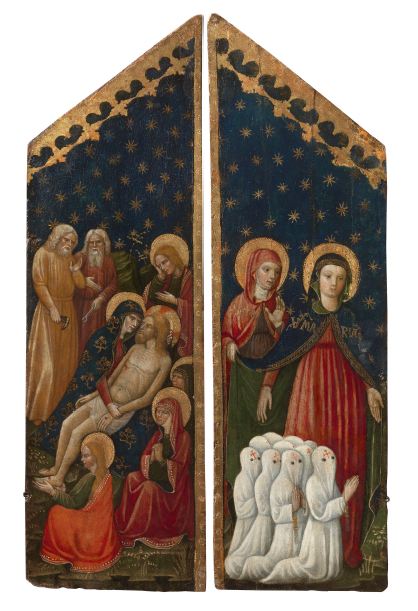 (attivo a Milano verso il 1460-1480) Compianto su Cristo morto (anta destra, cm 70,5 x 21, altezza lato interno cm 53,5, spessore