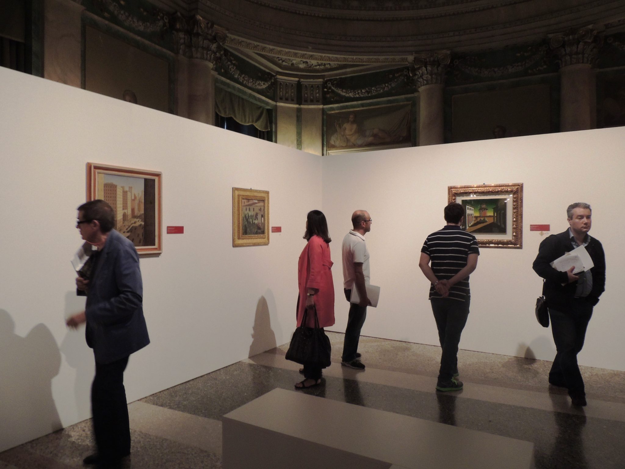 La mostra a Villa Olmo offre una riflessione sulla città moderna nell’arte del XX secolo e vi riscontra due anime, quella futurista e quella metafisica. Come racconta Gualdoni, “La città il futurismo deve inventarla per poterla pensare”. Non c’erano ancora in Italia delle vere metropoli come Londra e Parigi. Ma già Boccioni vedeva una “città che sale”, la intuiva come dinamica, in movimento, piena di entusiasmo e di possibilità. Nella prima sala c’è una sua opera, “Periferia” del 1909, che chiarisce bene il passaggio tra la campagna e la città che fagocita la natura. Ed è proprio con il Futurismo che la città entra in scena come soggetto di un ritratto, con una valenza psicologica.