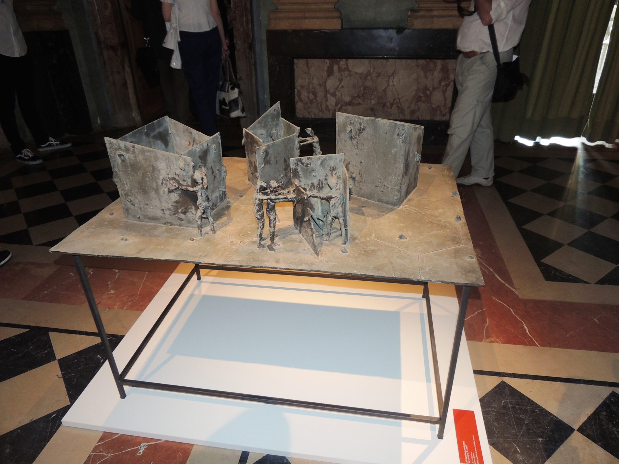 Tra le “chicche” presenti in questa esposizione si segnalano: una scultura inedita di Arnaldo Pomodoro creata ad hoc per la mostra e “La città che avanza” di Giacomo Balla, del 1942. Un olio di un Balla deluso dal Futurismo che dipinge questo Lungo Tevere evocando l’entusiastica “Città che sale” di Boccioni, ma con la consapevolezza che la città sta solo avanzando. La bella e particolare cornice è originale.