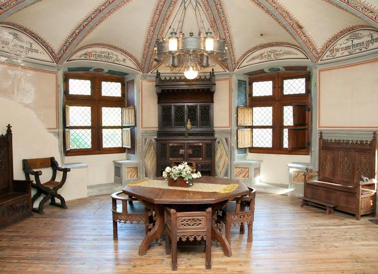 Замок Сарриод д’Интрод. Комната в стиле “омаж” замку королевы Маргариты Савойской.  В данном случае омаж означает преклонение перед стилем, повторение, имитация.