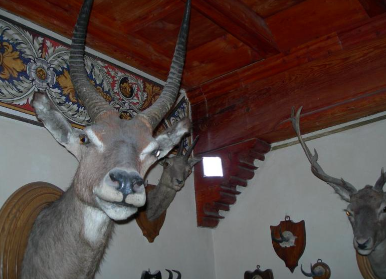 Замок Сарриод д’Интрод. Интерьер с охотничьими трофеями.