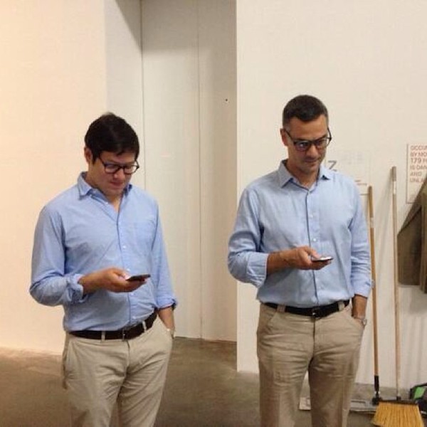 E così Massimiliano Gioni, noto curatore, compare sul profilo del New Museum, in una fotografia che lo ritrae in compagnia del curatore Gary Carrion-Marayari nelle sale della mostra “Here and Elsewhere” che aprirà la prossima settimana.