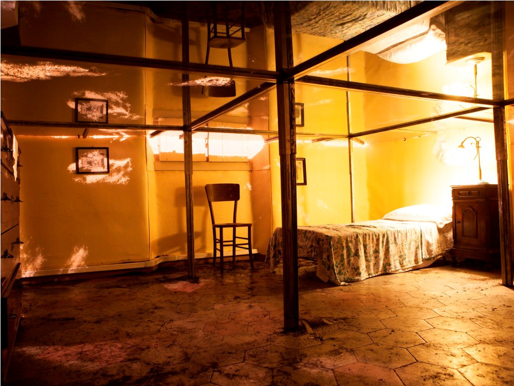 L’altro livello della terra, senz’altro l’installazione più complessa di questa edizione di Giorni Felici ricostruisce, con un’efficacia impressionante, una dimensione domestica segnata dalla malattia.