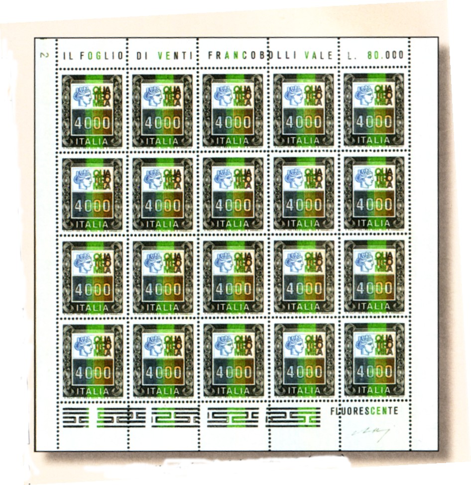 Nel settore contemporaneo, quello dopo il 1970, spiccano soprattutto i foglietti Alti Valori del 1978-87, ciascuno costituito da 20 esemplari di francobolli di posta ordinaria di alto valore facciale: 1500, 2000, 3000, 4000, 5000, 10000, 20000, quasi tutti smembrati per la corrispondenza. Tesaurizzati da pochi collezionisti – dato che per acquistarli occorreva pagare allo sportello postale un totale di 910.000 lire – questi mini fogli sono assai rari, soprattutto quello del 4000 lire, ed hanno sull’Unificato una quotazione totale di 3.440 euro destinata nei prossimi anni a rivalutarsi sensibilmente.
