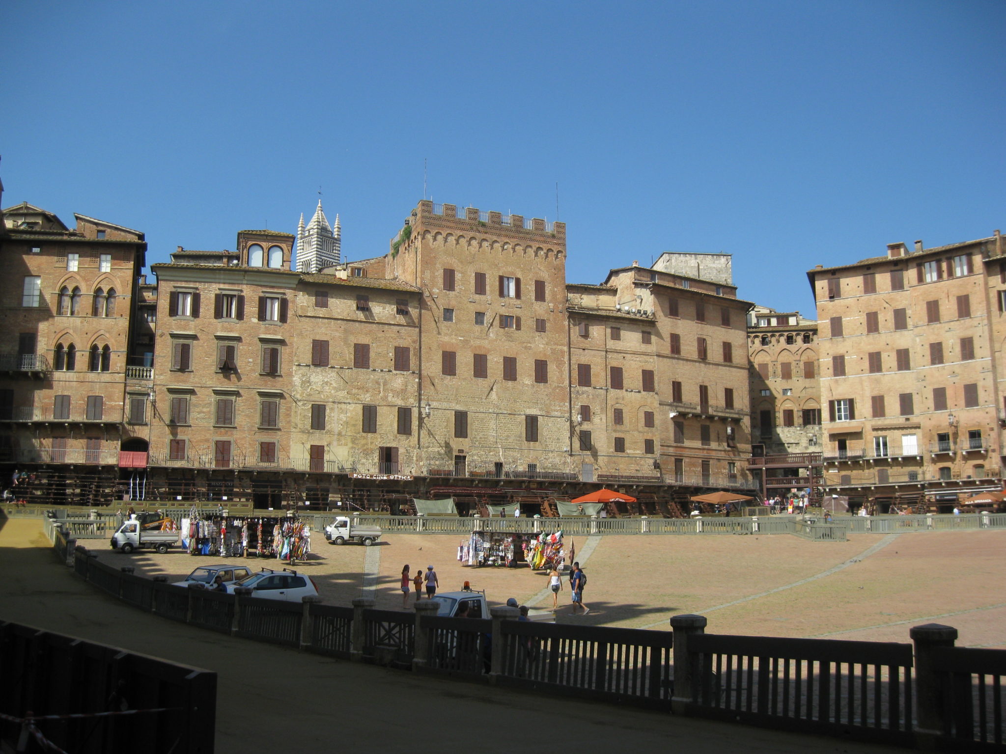 Per strada le bandiere delle contrade sventolano in una danza che rievoca i segnali di guerra: si avvolgono su se stesse e si librano in aria in vorticosi lanci e scambi ad opera di abili arcieri. Guai a chiamarli sbandieratori. I tamburi rullano e gli addetti ai lavori stendono uno strato di terra composto da una miscela di tufo, argilla e sabbia sull’anello di pietra serena in Piazza del Campo, che sarà scenario della vittoria di un Palio in bilico tra religiosità e scaramanzia. Un inesplicabile binomio che trova compimento nel Duomo, la cui navata centrale è scandita dalle diciassette bandiere delle contrade.
