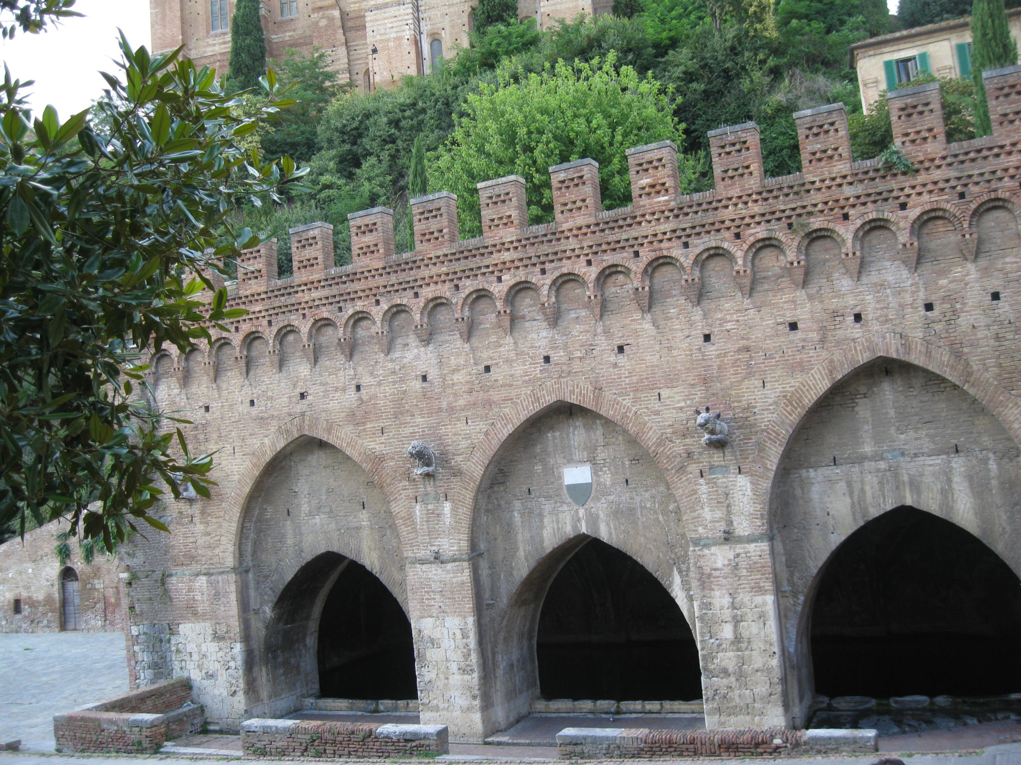 In un imperterrito sali e scendi per i vicoli di Siena, soffermandosi ad ammirare i numerosi scorci, le vedute della città e le terrazze aperte sui colli circostanti, prima di allontanarsi dall’allure medievale di un borgo che appare senza tempo, si arriva alla vera casa, ora santuario, di Santa Caterina, patrona d’Italia dal 1939. E poco distante, la Fontebranda, la più importante fontana della città utilizzata dai tintori – tra questi anche il padre della santa senese – che Dante cita così nel XXX canto dell’Inferno:
