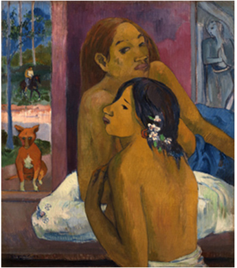 Paul Gauguin, "Deux Femmes", 1902,  olio su tela 74 x 64.5 cm. Si tratta di un'opera realizzata negli ultimi anni di vita dell'artista in vendita per una cifra che si aggira attorno a €18 milioni (US$26 milioni) da Dickinson, noto mercante d’arte