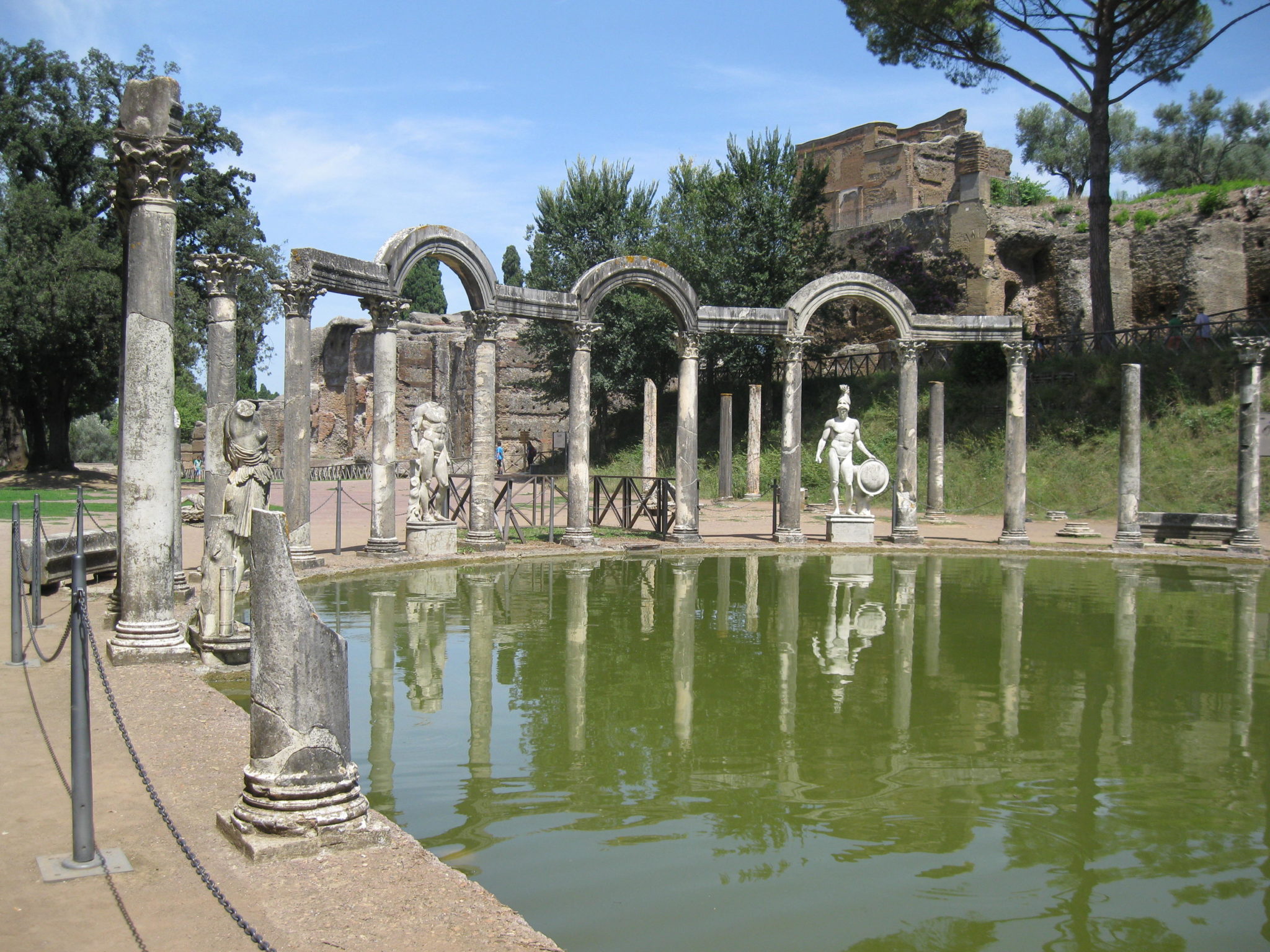 “Fece costruire con eccezionale sfarzo una villa a Tivoli ove erano riprodotti con i loro nomi i luoghi piu` celebri delle province dell’impero, come il Liceo, l’Accademia, il Pritaneo, la città di Canopo, il Pecile e la valle di Tempo, e per non tralasciare proprio nulla,vi aveva fatto raffigurare anche gli inferi” (Historia Augusta, Vita Hadriani, XXVI: 5).