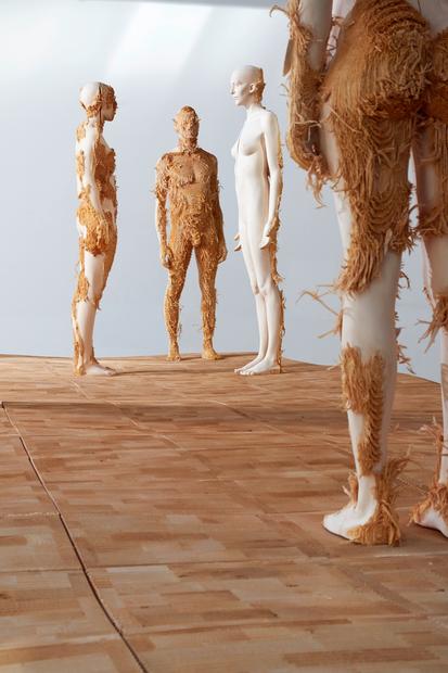 Aron Demetz ha perlopiù scelto come soggetto delle sue opere il corpo umano, servendosi di materiali base come il legno di tiglio, di pino e di abete e aggiungendo a volte elementi quali il bronzo, la foglia d’argento o d’alluminio e la resina che raccoglie personalmente nei boschi della Val Gardena