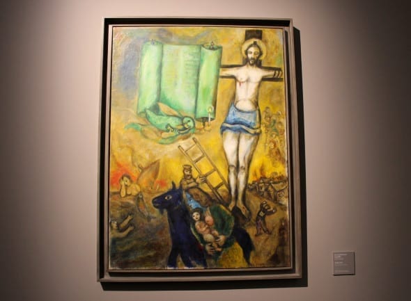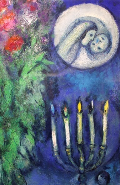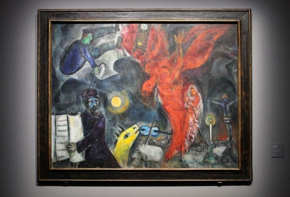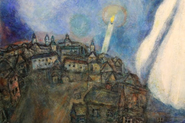 Una religiosità profonda, un arte “di un mercurio scintillante, di un’anima blu che irrompe nei quadri“, un’opera senza limiti, atemporale e senza distinzioni. Al di sopra di tutto e tutti. Trasfigurata sulla tela come una fiaba o una poesia, ispirata alla patria, alla vita contadina, alla famiglia, all’amore e alla fede ebraica ma anche al dolore e alle persecuzioni, nelle quali il colore, autonomo e brillante, zampilla trascinando con sé figure oniriche che ne popolano lo spazio. Un metissage di culture e tradizioni nella volontà di “fare della contaminazione un valore”: un manifesto di tolleranza unico nel Novecento e assolutamente attuale.