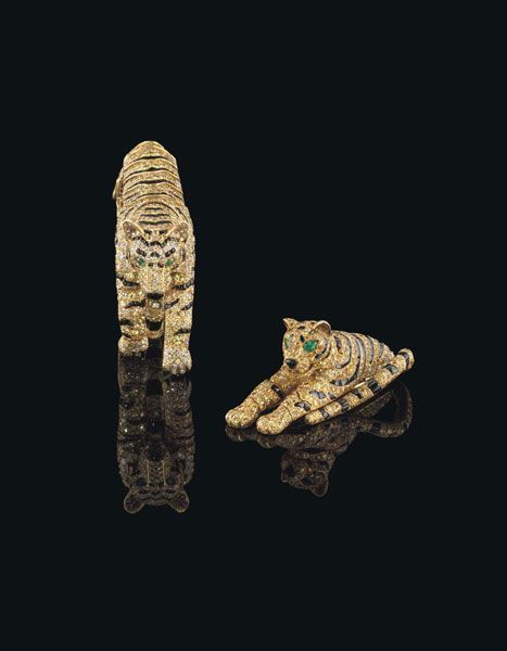 La Tiger Collection di Cartier verrà messa all’asta il prossimo novembre da Christie’s. La stima si aggira sul milione e mezzo di sterline. Anche la provenienza è eccezionale: il bracciale e la spilla erano stati acquistati alla fine degli anni ’50 da Edoardo VIII per Wallis Simpson. Alla sua morte nel 1986 la collezione fu messa all’asta a Ginevra e le due tigri furono acquistate da  Andrew Lloyd Webber per la moglie Sarah Brightman. E’ proprio lei a mettere all’asta i gioielli. Parte dei proventi andranno alla Andrew Lloyd Webber Foundation che sostiene lo studio dell’arte e della musica nelle scuole
