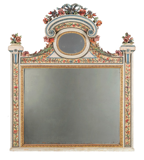 Di grande piacevolezza una coppia di vasi in porfido del XIX secolo montati in bronzo dorato con fregi e festoni e decori di gusto classico su base a plinto squadrata, coperchi con presa in forma di pigna (stima 4.000 – 6.000 euro), così come due sculture in legno scolpito, dorato e intagliato genovesi del XVIII secolo rappresentanti l’allegoria dell’Autunno e della Primavera: le due figure recano vesti riccamente panneggiate e sorreggono in una mano i loro attributi distintivi (stima 4.000 – 6.000 euro), e una caminiera in legno intagliato, laccato e dorato del XVIII-XIX secolo d’ impianto squadrato, fasce percorse da tralci vegetali policromi, cimasa centrata da specchio ovale ornata da fregio traforato con nastro e fiori (3.000 – 5.000 euro).