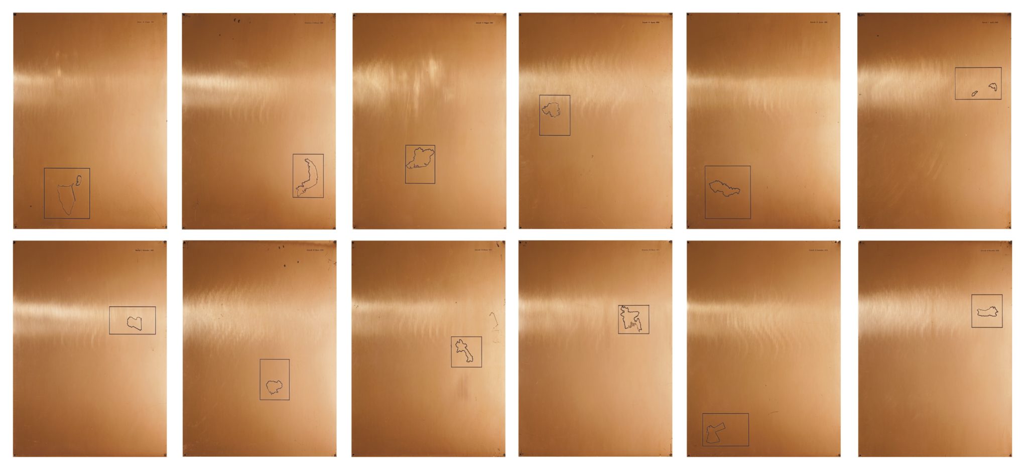 L’artista che essenzialmente ha dato il nome alla collezione, è Alighiero Boetti in catalogo con due opere che esplorano infatti le nozioni di geografia, le mappe, le linee arbitrariamente tracciate sul terreno, e gli effetti misteriosi che hanno avuto sulla storia dell’uomo e sugli eventi attuali, una tematica che non perde mai rilevanza.