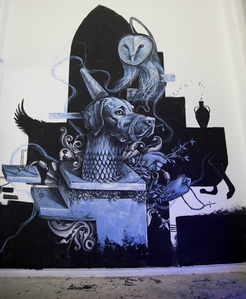 - Kraser è artista e grafico; nato a Cartagena (España) nel 1977, ha studiato presso la scuola d’arte di Murcia nel 2000 e dal 2009 si trasferisce a Milano, dove attualmente risiede. Fin da ragazzo si sente attratto dalla pittura e, proprio per la sua giovane età, muove i suoi primi passi nel mondo dell’arte con la Street Art. Ha partecipato a numerose esposizioni d’arte nazionali e internazionali; ha realizzato live painting in moltissimi festival; è stato pubblicato in numerosi libri e riviste e ha curato diversi festival ed esposizioni. Kraser è influenzato dalla pittura classica e da diversi movimenti artistici, il Surrealismo e Lowbrow tra gli altri. Nel suo lavoro emergono riferimenti alla società contemporanea e al mondo dei sogni. Di conseguenza ricorrono nei suoi graffiti concetti ironici e onirici creati per trasmettere suggestioni la cui interpretazione è lasciata alla sensibilità propria di ogni spettatore. Fin dal principio e attraverso tutta la sua opera, si genera una linea di lavoro dove quasi sempre sono presenti Lettere alfabetiche, segni e icone che si mescolano e legano tra loro articolate in un peculiare linguaggio.