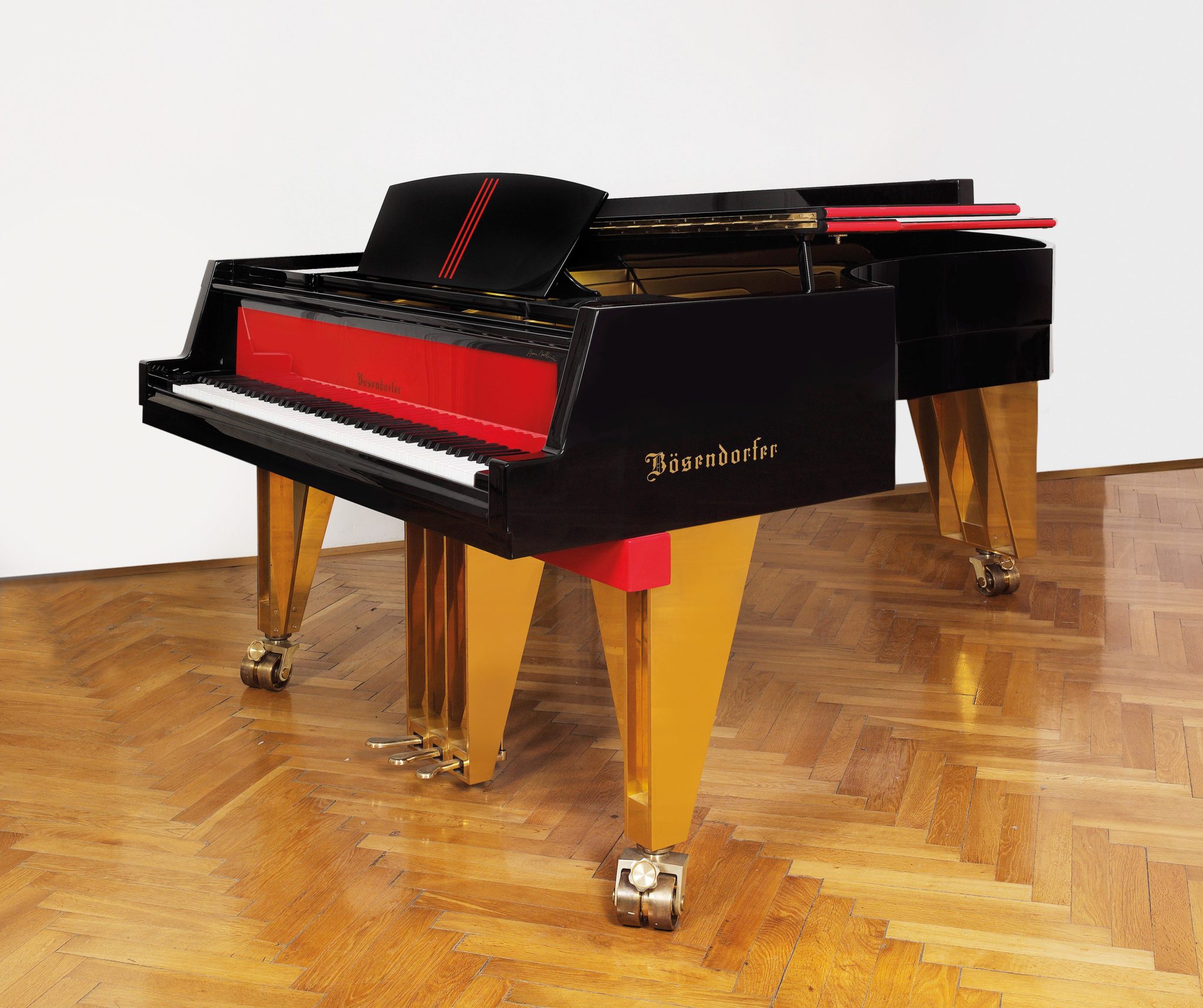 Oro e rosso per il pianoforte progettato per Bösendorfer da Hans Hollein, appartenuto all’architetto fino alla sua morte nel 2014. La manifattura di pianoforti viennese ha mantenuto negli anni la sua tradizione nel far progettare ad artisti i suoi pianoforti, infatti prima di Hollein i designer furono Hans Makart e Josef Hoffmann (€ 110.000 – 130.000).