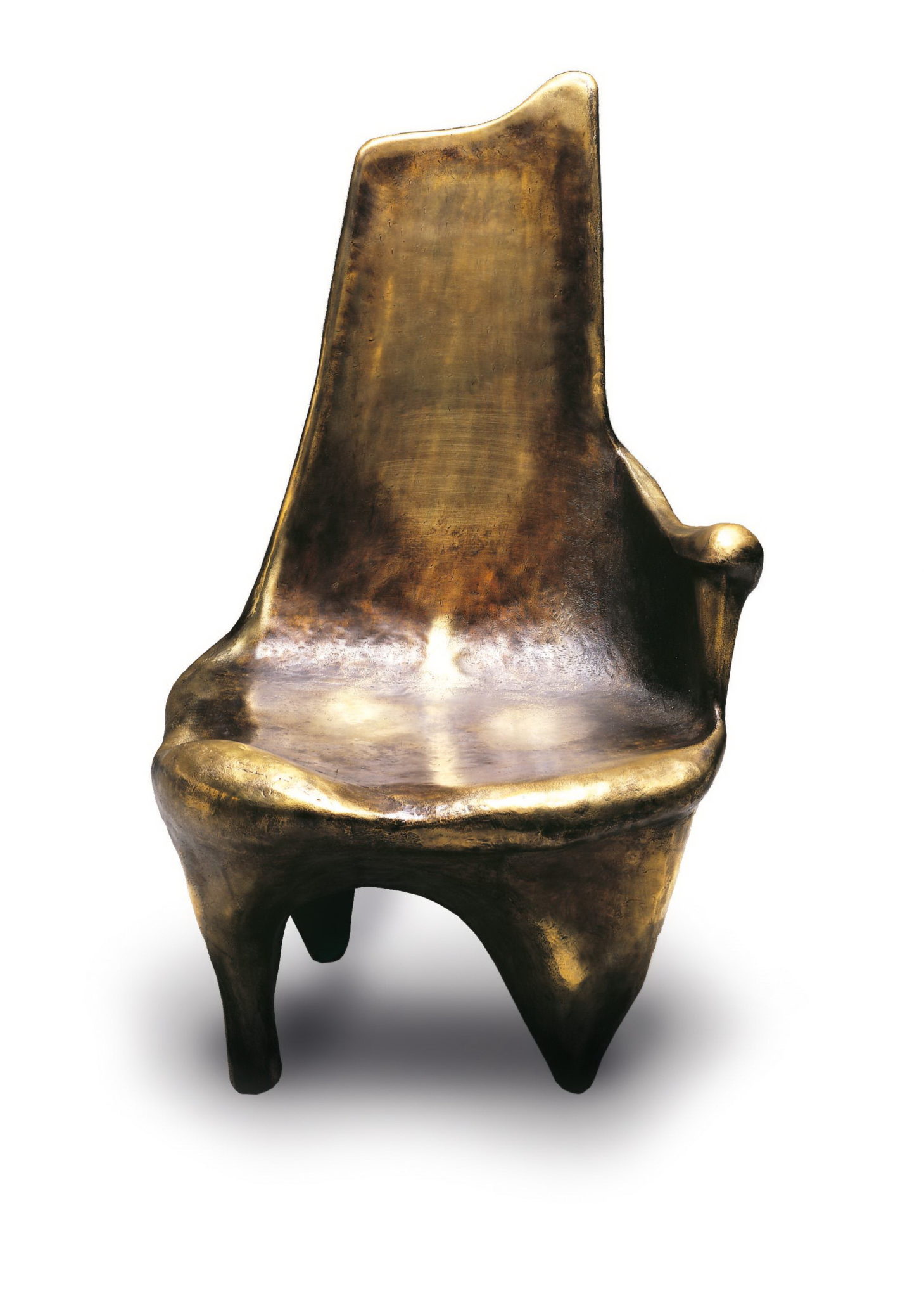Tavoli e oggetti per sedersi di tutti i tipi di Ron Arad dalla comoda sedia Rover degli anni ‘80 (€ 5.000 – 6.000), attraverso la meno comoda „Big Heavy“ in acciaio lucido (Nr. 10/20, € 38.000 – 45.000) fino alla “rischiosa” „A.Y.O.R.“, la cui abbreviazione è l’avvertimento del designer: AT YOUR OWN RISK – a proprio rischio (Nr. 18/20, € 40.000 – 45.000).